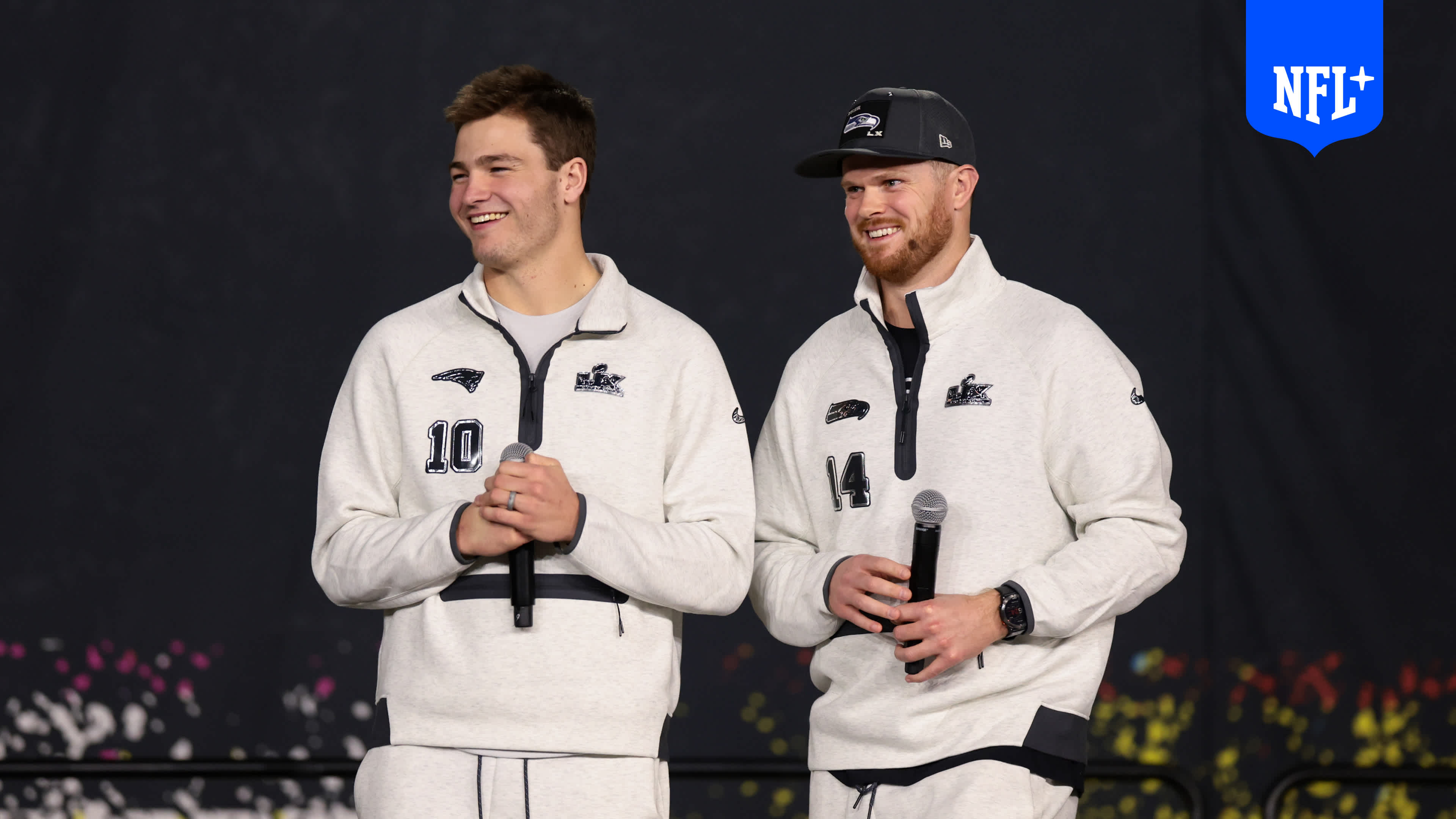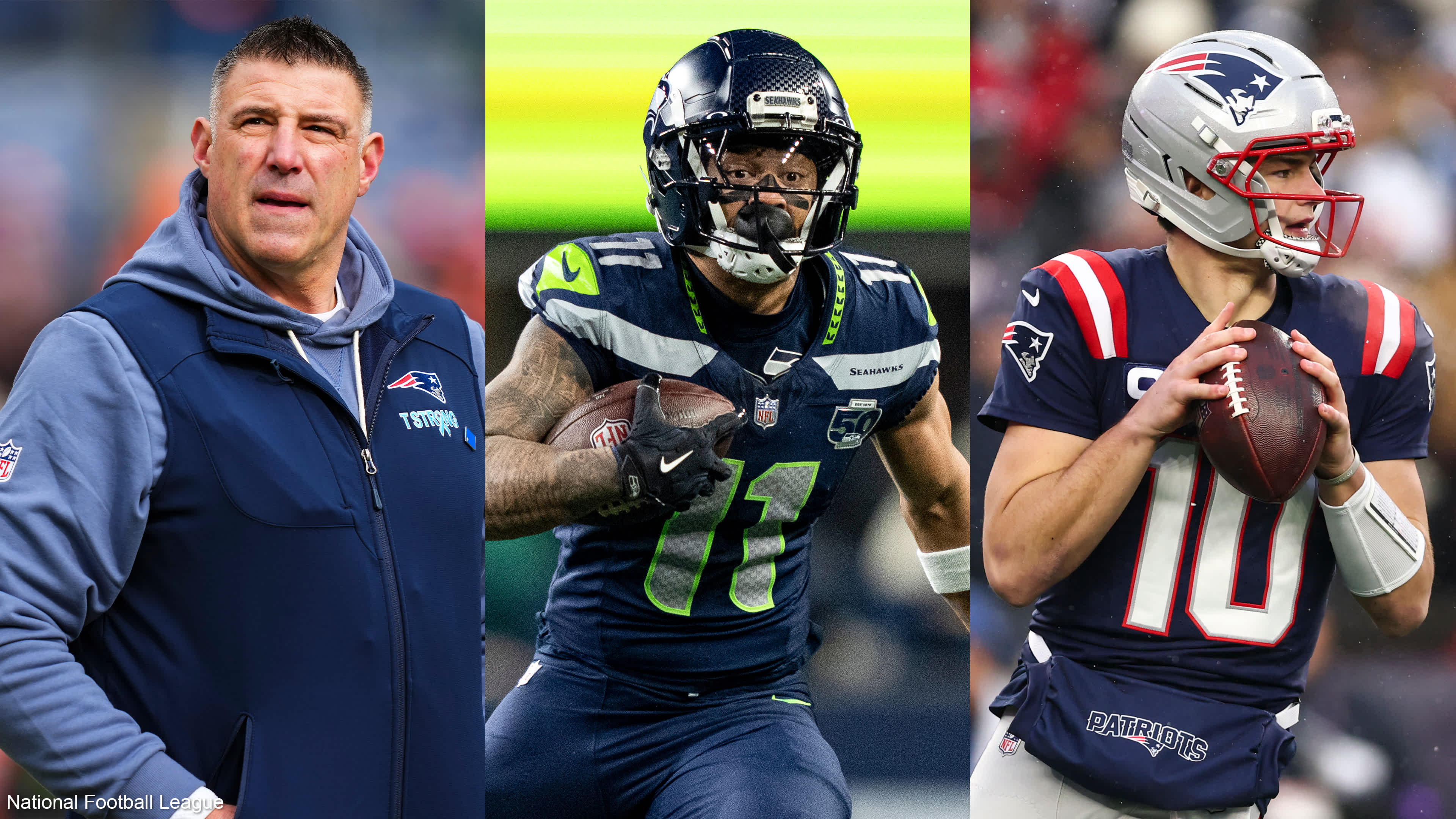 New England Patriots quarterback Drake Maye, San Francisco 49ers running back Christian McCaffrey, and Seattle Seahawks wide receiver Jaxon Smith-Njigba win the 2025 NFL Air and Ground Players of the Year awards.